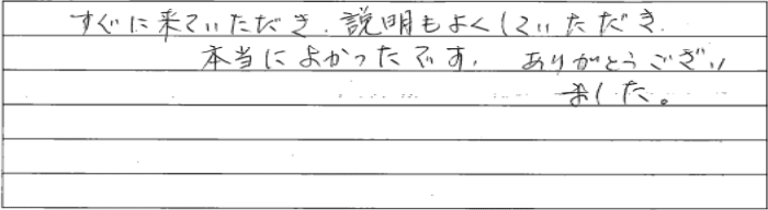 すぐに来ていただき、説明もよくしていただき、本当によかったです。
