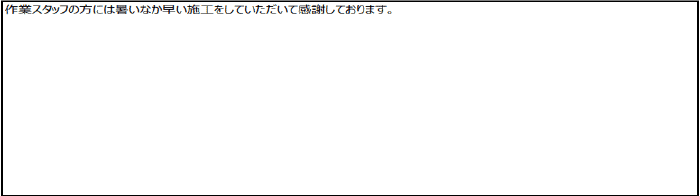 工事に対しての安心・安全でよかったので、今後共宜しくお願い致します。