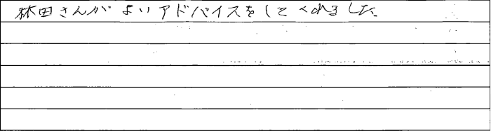 とても話しやすく、質問しやすく、丁寧に答えてもらいました。